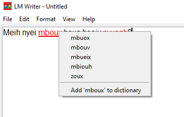 LM Writer is a simple Iu Mien text editor with spell checking. This marks a significant milestone as the first software of its kind, purpose-built to support the unique linguistic needs of the Iu Mien community. By streamlining the writing process, we are making it easier than ever to preserve our language in digital spaces.